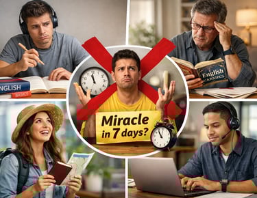 ❌ Não é para quem procura fluência milagrosa em 7 dias ou não está disposto a praticar.